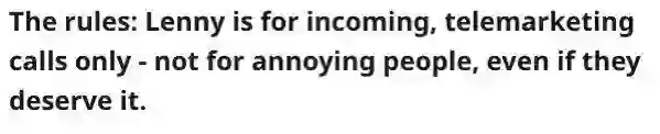 在接听骚扰电话时Lenny听上去完全就是一个善良但迟钝的真实老头——听力不好,说话速度超慢,说着口音很重的英语,喜欢唠叨自己的女儿们。但不管你说什么他都会显得很有兴趣的样子,给你热情回应。