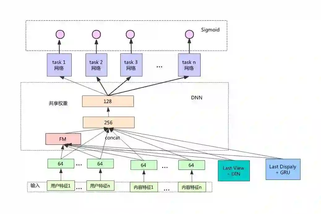 后来考虑设计一个多目标模型,一个是基于点击率的模型,一个是基于收藏率的模型,基于点赞率,基于评论率等等,一共设计8个目标。