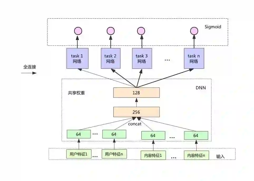 从性能方面的考虑,我们将底层权重设置成共享的,最后一层会根据不同的目标进行权重的训练。