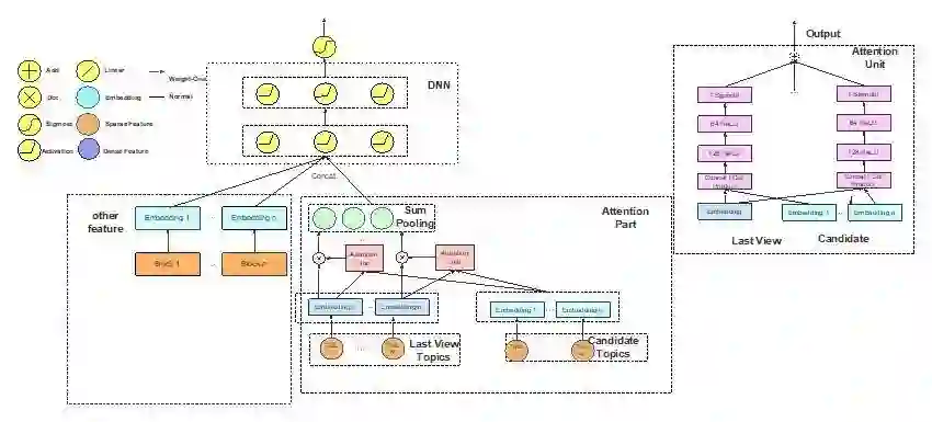 o Last view topic 与当前内容的几个 topic 计算 Attention Score,再按权重进行 sum pooling;