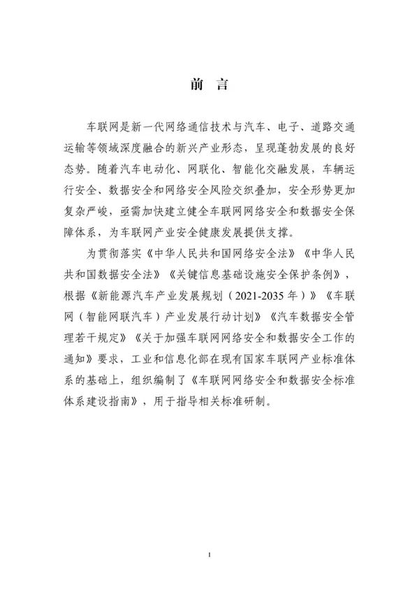 现将《车联网网络安全和数据安全标准体系建设指南》印发给你们,请结合本行业(领域)、本地区实际,在标准化工作中贯彻执行。
