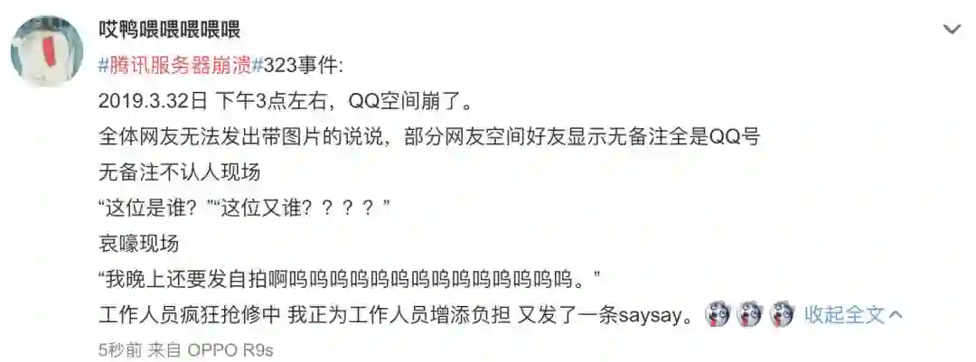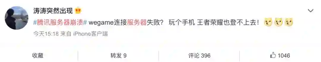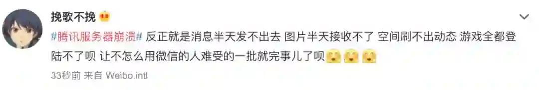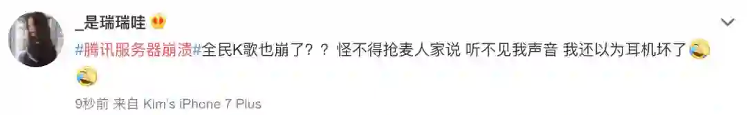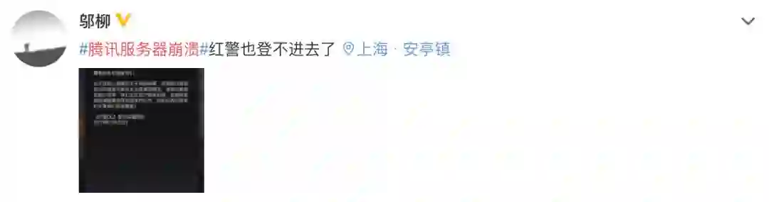 除了腾讯系手游出现问题,比如王者荣耀、奇迹暖暖、掌盟、红警等等登录不了,微信、QQ、QQ 音乐全民 K 歌等服务也受到波及。