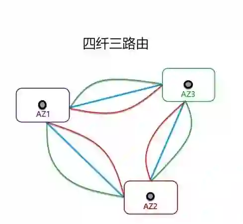 另外,从架构层面看,此次光纤故障,腾讯云网络能够在极短时间内自动恢复,一个重要原因要归功于它可用区之间互联的底层网络,这套网络采用了运营商级“四纤三路由”的高冗余架构设计。