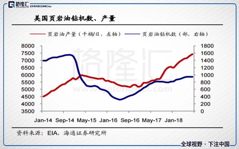 油价的上涨也刺激了美国的页岩油的生产,美国原油产量目前大概在1100万桶/天。