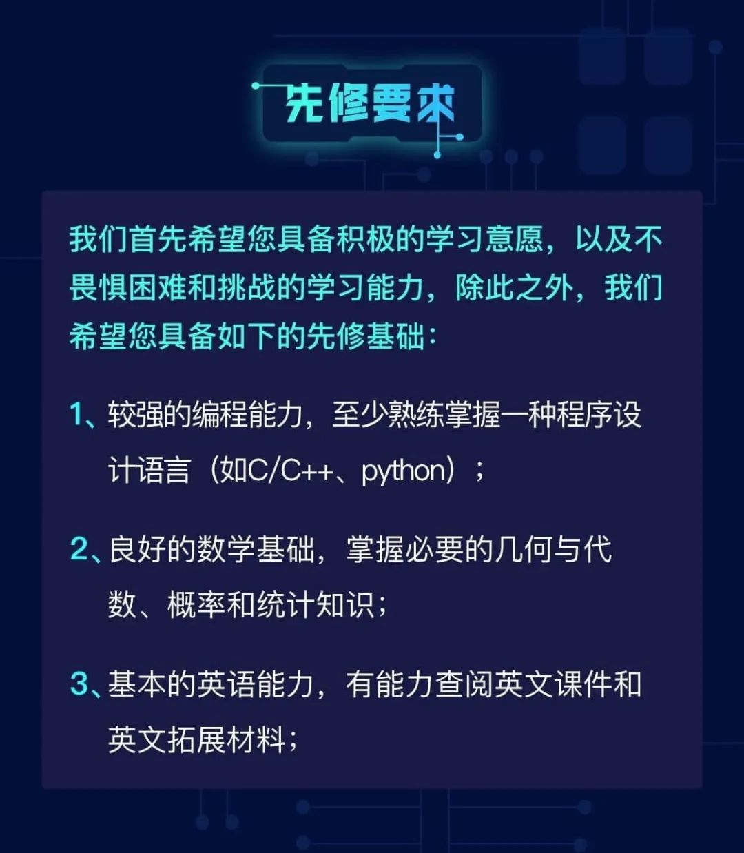 特此推荐给希望进入人工智能领域的高年级本科生、研究生以及从事人工智能研究/开发的从业者。该课程计划于4月28日开课。