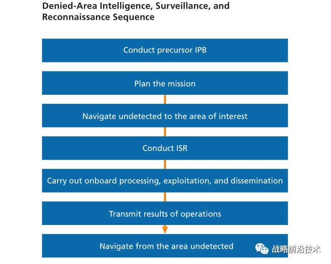 (二)在拒止区域内搜集情报。这一任务的挑战是,存在大量水雷、反潜战传感器的拒止区域,未来将变得更加难以进入,从而给试图进入的无人潜航器带来更大的压力。无人潜航器不仅要绕过水雷和其他障碍,而且要克服水下传感器和武器。而且,它们传送信息的能力将受到严重限制,因为如果浮出水面或者发射信号,就有可能被探测到并受到火力打击。