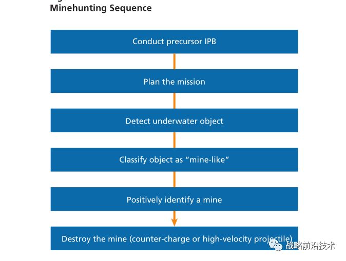 “杀伤链”指的是为达到作战效果而需要采取的一系列行动。这里的“杀”不是指致死或毁灭物体,而是指多个相关步骤产生了理想的结果。在战争领域,杀伤链包括情报准备、探测、定位、目标选择与瞄准、打击。就海军而言,自主系统在三个领域发挥重要作用:水雷对抗;拒止区域情报监视与侦察;作战欺骗。