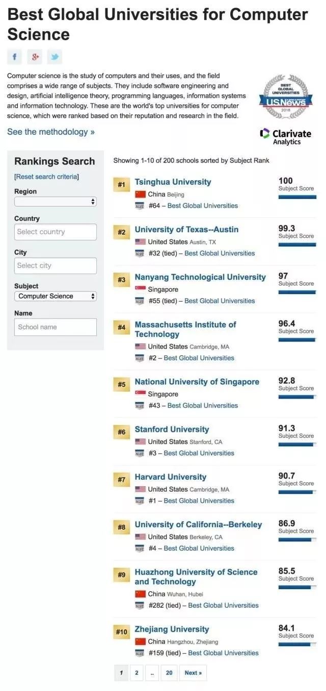 根据US News的最新大学工科最新排名显示,清华大学排名全球第一,领先于麻省理工、斯坦福和哈佛等学校。另外,中国的华中科技大学,浙江大学也进入全球前十。