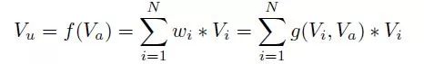 Wi: 对于候选广告,attention 机制中该兴趣的权重