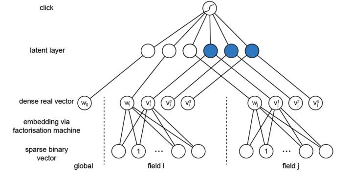 如果有办法将每个特征用其所属的 field 来表示,原始输入将大大减少不少。Factorisation-machine Supported Neural Networks,简称 FNN 就是基于这种思想提出来的。