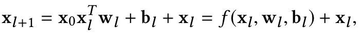 Embedding and Stacking Layer 输入后的另一路就是 DCN 的重点工作了。假设网络有 L1 层,每一层和前一层的关系可以用如下关系表示: