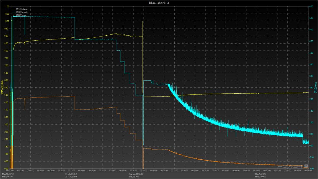 ❶ 高功率持续时间长,黑鲨 3 标准版实际能在 5.5A 维持 12 分钟;