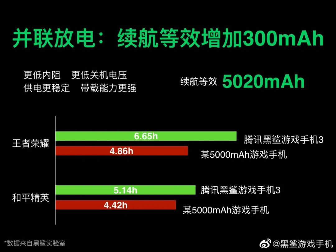 其中后两点加在一起,大概是黑鲨官方称续航等效增加的理论来源。