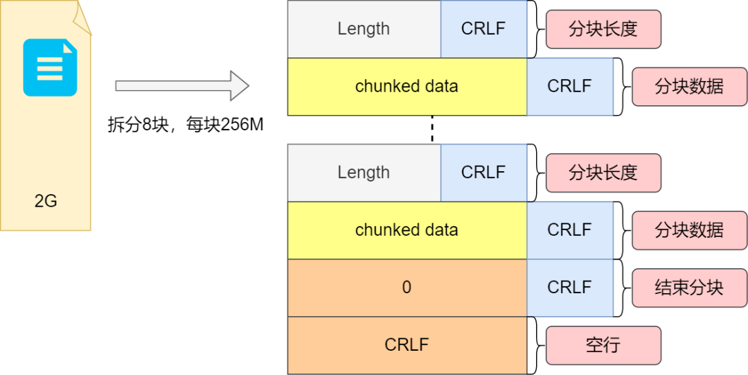 我们知道,在电商系统中,经常会因为促销活动导致流量飙升,为了缓解流量,其中有种方法即加缓存或者加服务器。如果是单台服务器负载过大,数据库可能分库分表。数据结构算法中分而治之方法亦是如此。那么HTTP中,同样的道理,如果文件太大,就大文件切分为小文件块发送。