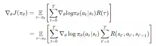 将目光转回到棋盘游戏。为了实现强化学习 agent,我们将会利用与之前相同的 OpenAI gym 环境。这次,我们将使用 Flax/JAX 训练相同的策略梯度模型。回想一下,在数学层面上策略梯度的定义是: