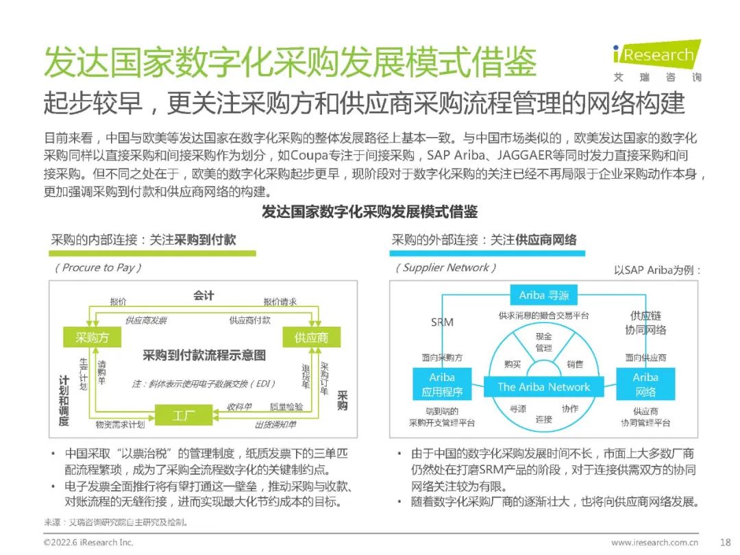 随着企业对采购精细化管理的要求,数字化采购开始由ERP时代迈向SRM时代。狭义的数字化采购即SRM(供应商关系管理)软件,覆盖从采购寻源到交付结算、供应商评估的整个生命周期,能够对主营物资、非主营物资进行不同颗粒度的管理。