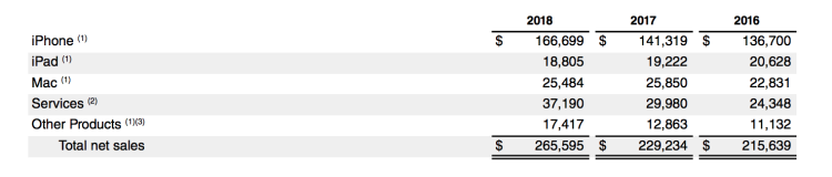 与之相反,服务产品近三个财年逐年增长,营收额为:2018年371.9亿美元,2017年299.8亿美元,2016年243.48亿美元。