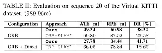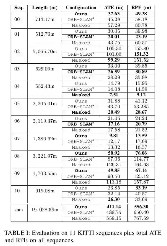 我们在动态环境中显示更稳定的姿态估计,并且在Virtual KITTI和Synthia数据集上的静态序列上具有与现有技术相当的性能。