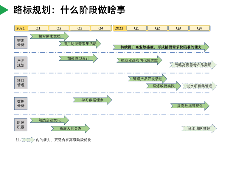 在思考这类问题时,你们是否有想到过:可以把招聘产品经理的公司看做用户,把自己看做一个待开发的产品,用产品思维做一份规划并落地执行呢?