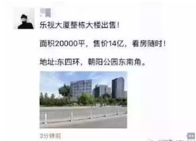 该大楼原名为“宏城鑫泰大厦”,位于北京朝阳公园桥东,面积为2万平方米,被乐视在2014年买下,更名为“乐视大厦”。