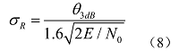 其中,E/N_0 为信噪比。可以看出:雷达的测距精度与信号带宽和信噪比成反比。