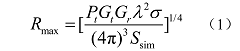 其中,R_max 是雷达的最大作用距离,P_t 是雷达发射功率,G_t 和 G_r 分别是发射天线和接收天线的增益,σ 是雷达截面积,S_sim 是雷达接收机最小可检测信号功率。