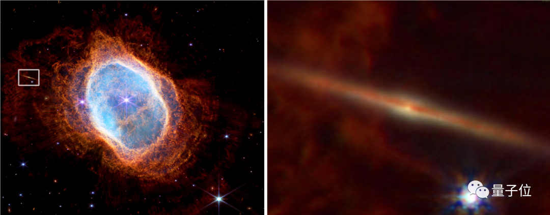 另一边,还有科学家发现,在韦伯望远镜拍下的南环状星云的侧面,藏着一个非常典型的盘状星系。