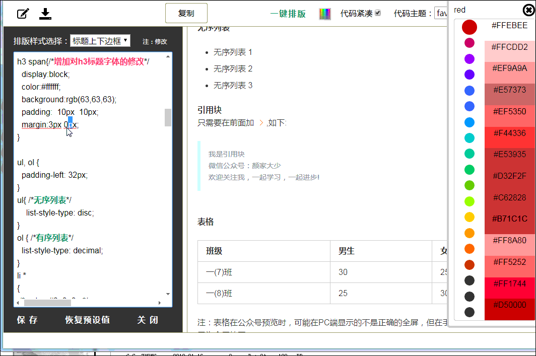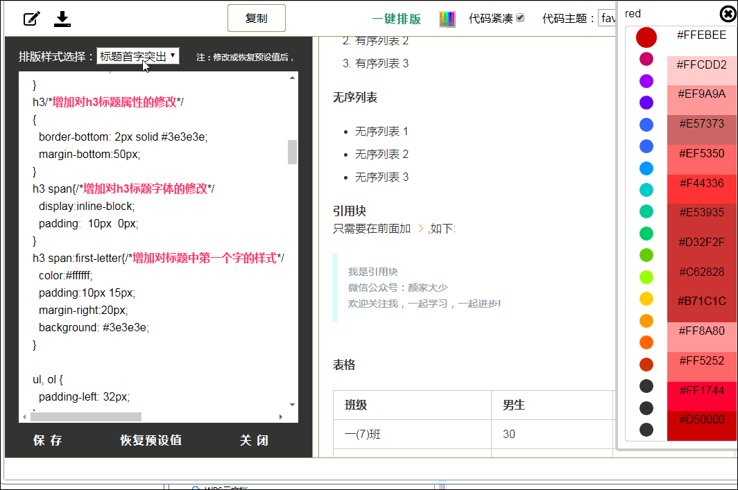 简单地说,css就是渲染网页所用的样式。打开“一键排版”,看到里面的的内容就是当前渲染效果对应的css样式,不同的样式模板对应不同的css样式,所以就能渲染出不一样的效果。