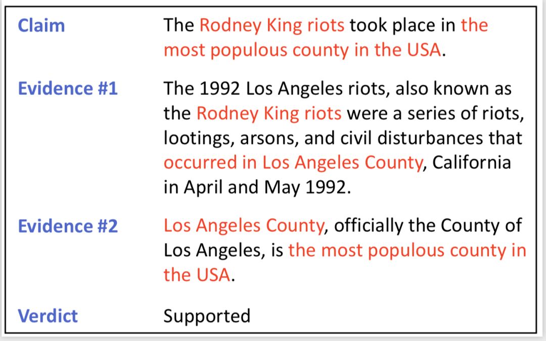 推理是自然语言处理领域非常重要且具有挑战性的任务,其目的是使用已有的知识和推断技术对未见过的输入信息作出判断 (generate outputs to unseen inputs by manipulating existing knowledge with inference techniques) [1]。在本文中,我们以事实检测为应用,介绍机器推理在事实检测任务上的最新方法和进展。
