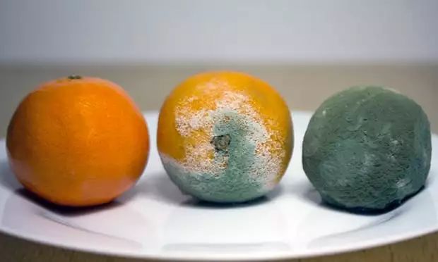蓝色霉菌覆盖了一片面包。图片来源:RapidEye/Getty Images/iStockphoto