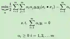 这个优化目标满足KKT条件,也就是说,我们可以通过拉格朗日对偶将我们的优化问题转化为等价的对偶问题来求解如下: