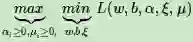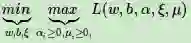 我们可以先求优化函数对于w,b,ξ的极小值, 接着再求拉格朗日乘子α和 μ的极大值。