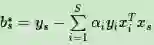 4) 找出所有的S个支持向量,即满足对应的样本,计算偏置项b
