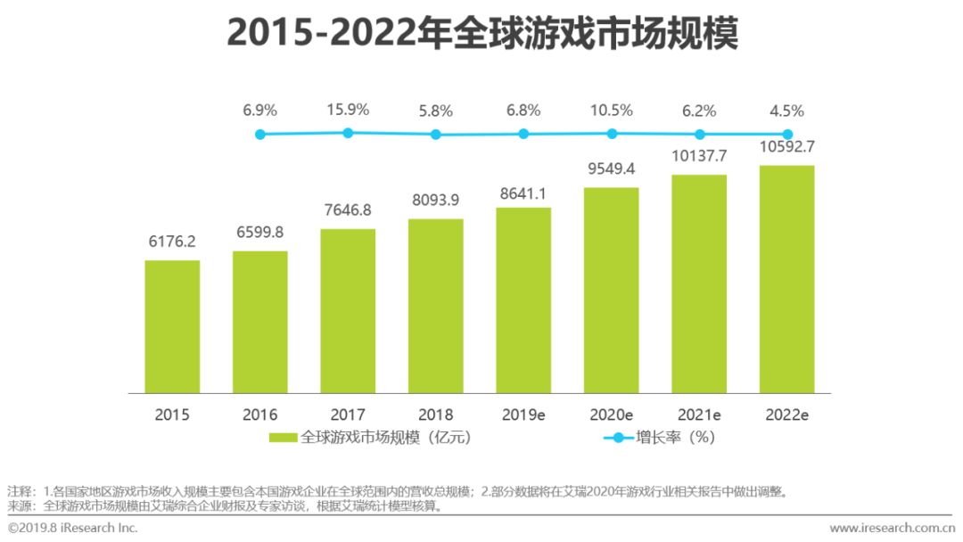 2018年,全球游戏市场总规模达8093.9亿人民币,同比增长5.8%。