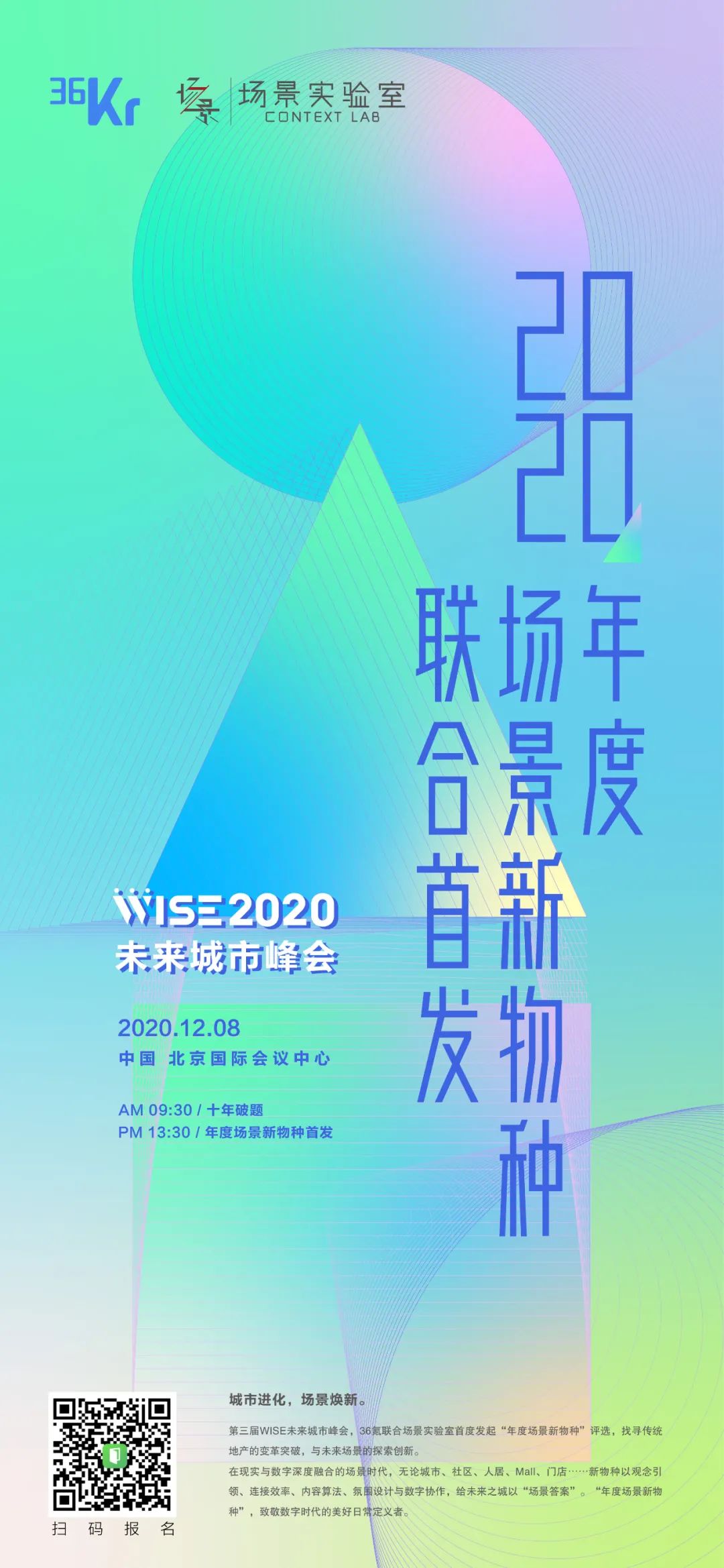 12月8日,WISE2020未来城市峰会,36氪联合场景实验室发起首届「年度场景新物种」评选,找寻传统地产的变革突破,与未来场景的探索创新。