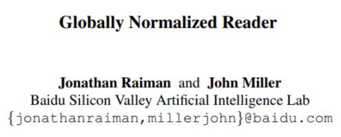 代码:https://github.com/baidu-research/GloballyNormalizedReader