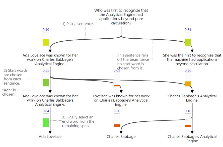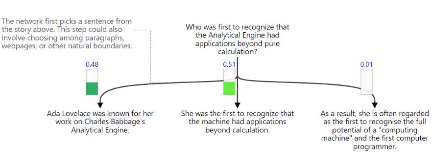 举一个例子来说明我们的方法:「是谁第一个认识到分析机(Analytical Engine)有超出纯粹计算以外的应用的呢?」,我们阅读以下一段文字来回答这个问题: