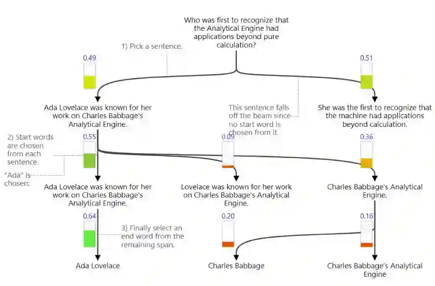 我们的方法是将提取答案的问答类检索作为一个迭代搜索问题:选择答案的句子、起始词和终止词。在每一步通过选择简化搜索空间,从而将计算集中于相关性最大的部分:潜在搜索路径。