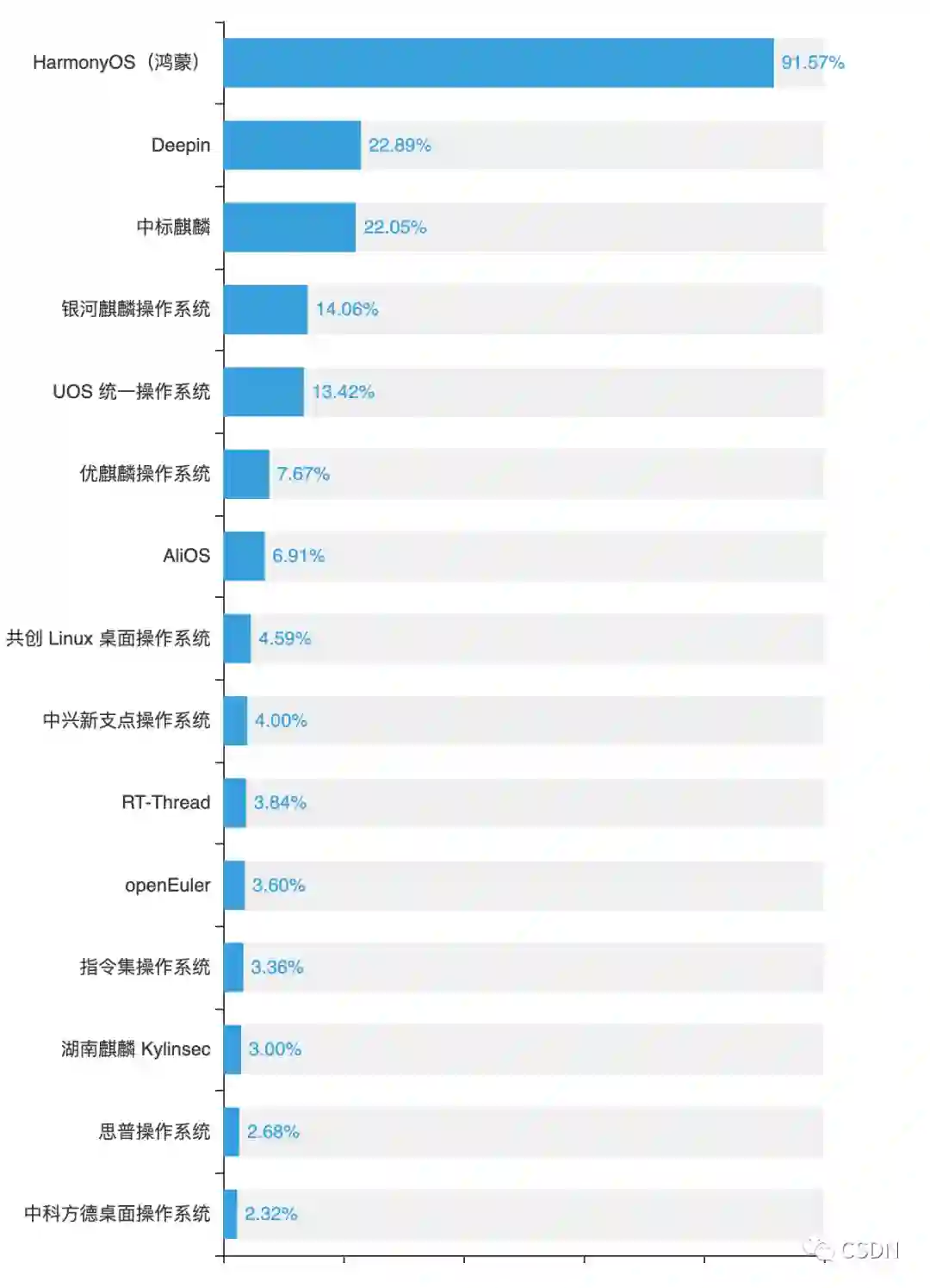 从开发者对国产操作系统的了解程度看,HarmonyOS在国内开发者群体中知名度较高,近92%的受访者表示对其了解,遥遥领先于其他国产操作系统。