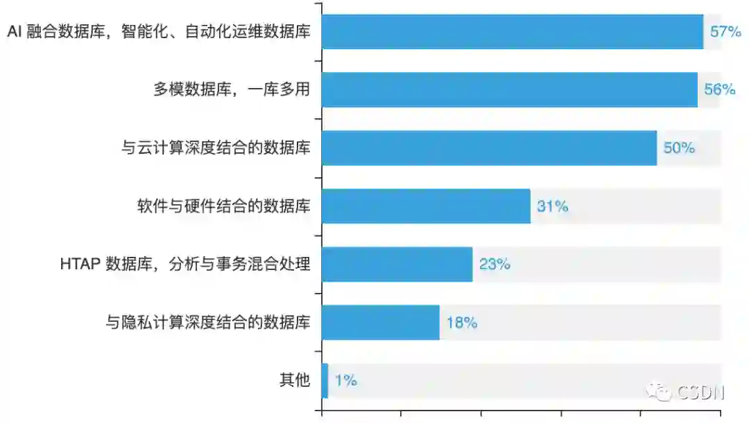 数据库运维是数据库相关工作中非常重要的一环,对于数据库领域一直存在的“智能运维是否会取代人工运维”争议,57%的开发者表示非常期待AI智能运维能取代人工运维。而数据库智能运维、与云计算结合、一库多用也是开发者最看好的数据库发展方向。