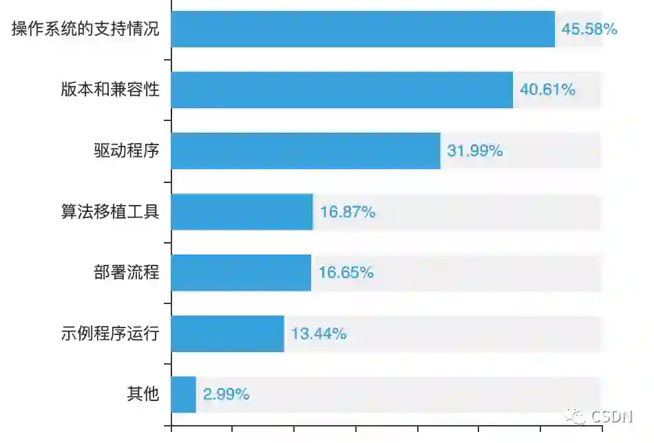 对于芯片配套的软件栈,操作系统的支持情况是开发者最关心的问题,其次是版本和兼容性问题。