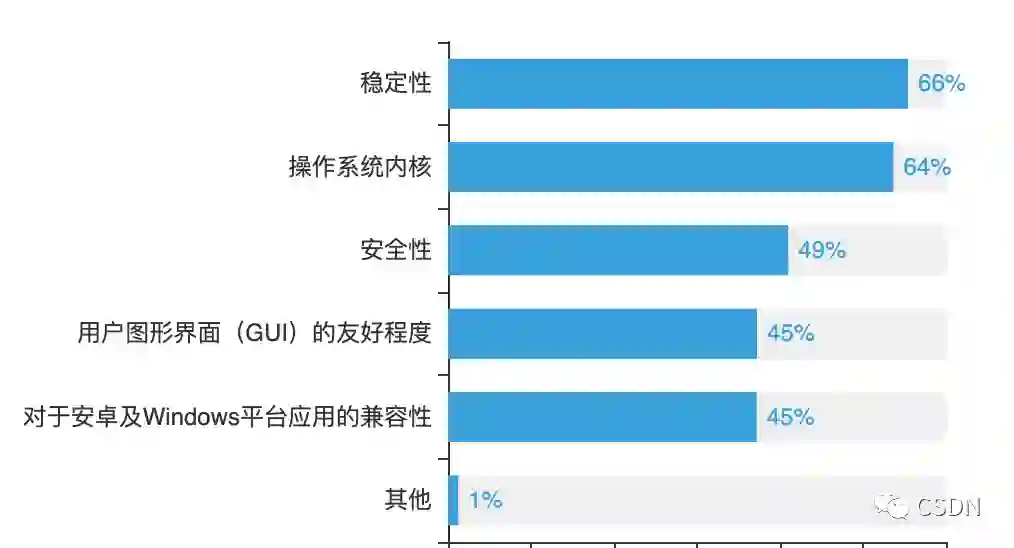 Linux被视为最安全的操作系统,尽管其面向用户侧没有很好的软件生态,却有74%的受访者仍愿继续使用。