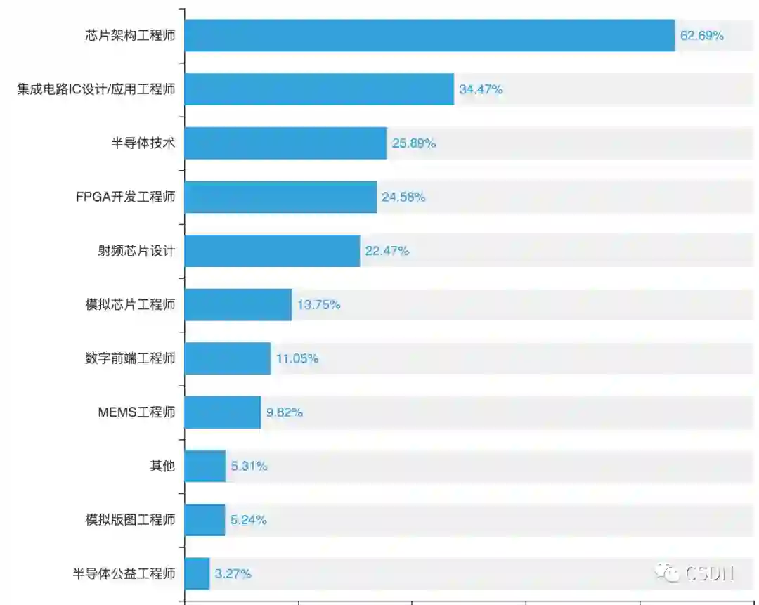 芯片人才匮乏,62.69%的受访者认为国内最稀缺的是芯片架构师。