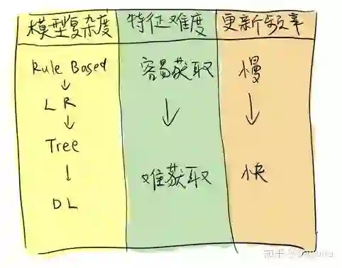 从机器学习的模型的角度,我们可以从没有模型到简单模型,再过渡到复杂模型,Rule Based System → Logistic regression → Tree Based Model → Deep Learning。
