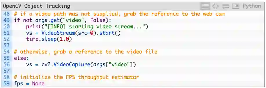 接着--video命令行参数会出现,所以我们可以从视频文件中对视频流进行初始化(55—56行)。