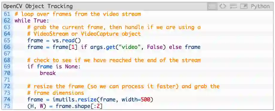 想要用OpenCV进行目标追踪,首先打开一个新文件,将它命名为opencv_object_tracker.py,然后插入以下代码: