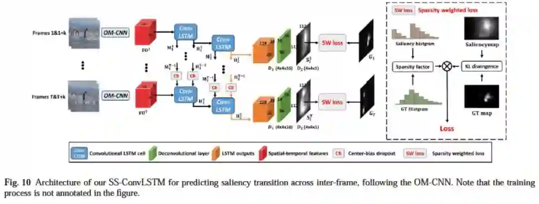 构造了动态结构 SS-ConvLSTM 用于预测视频显著性的帧间转移,同时考虑到了显著性的稀疏先验和中心先验。