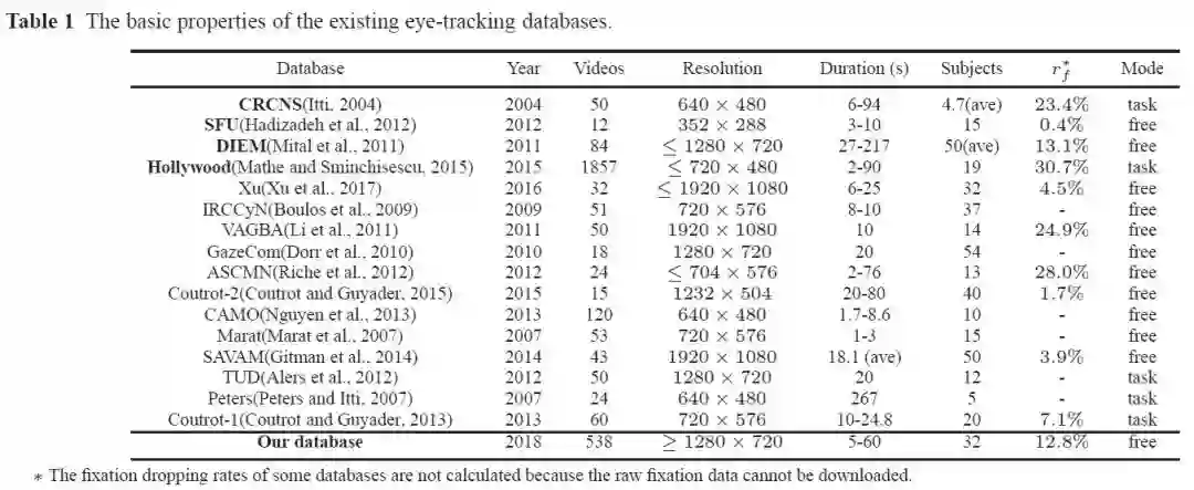 建立了大规模普适视频的眼动数据库,包含了 158 子类的 538 个视频,以及详尽的数据分析;