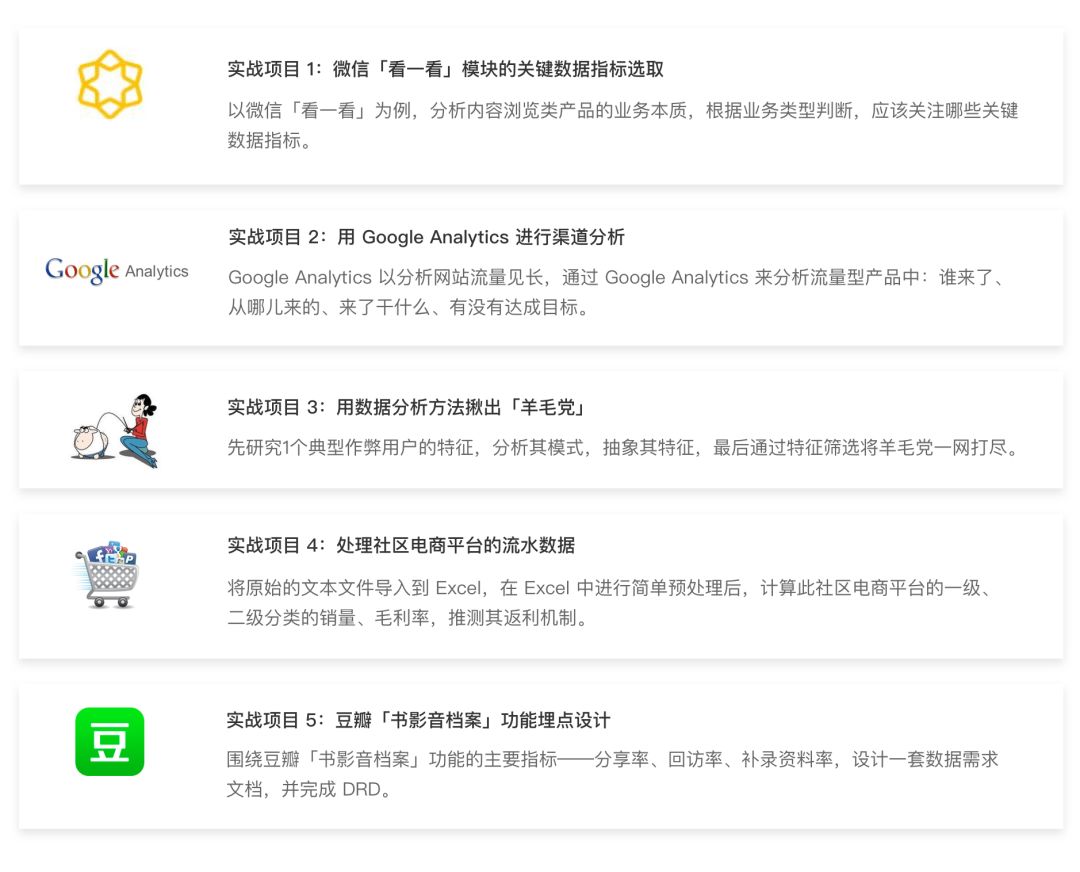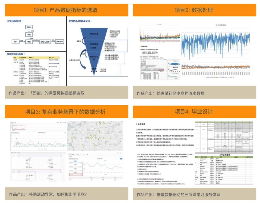 此外,有必要提及的是——在这门数据课程中,还为你准备了8个与课程内容和实际业务强结合的实战项目,供你试炼,且每个项目都会有我们的资深助教老师来为你批改反馈,确保你学完之后可以真正上手。