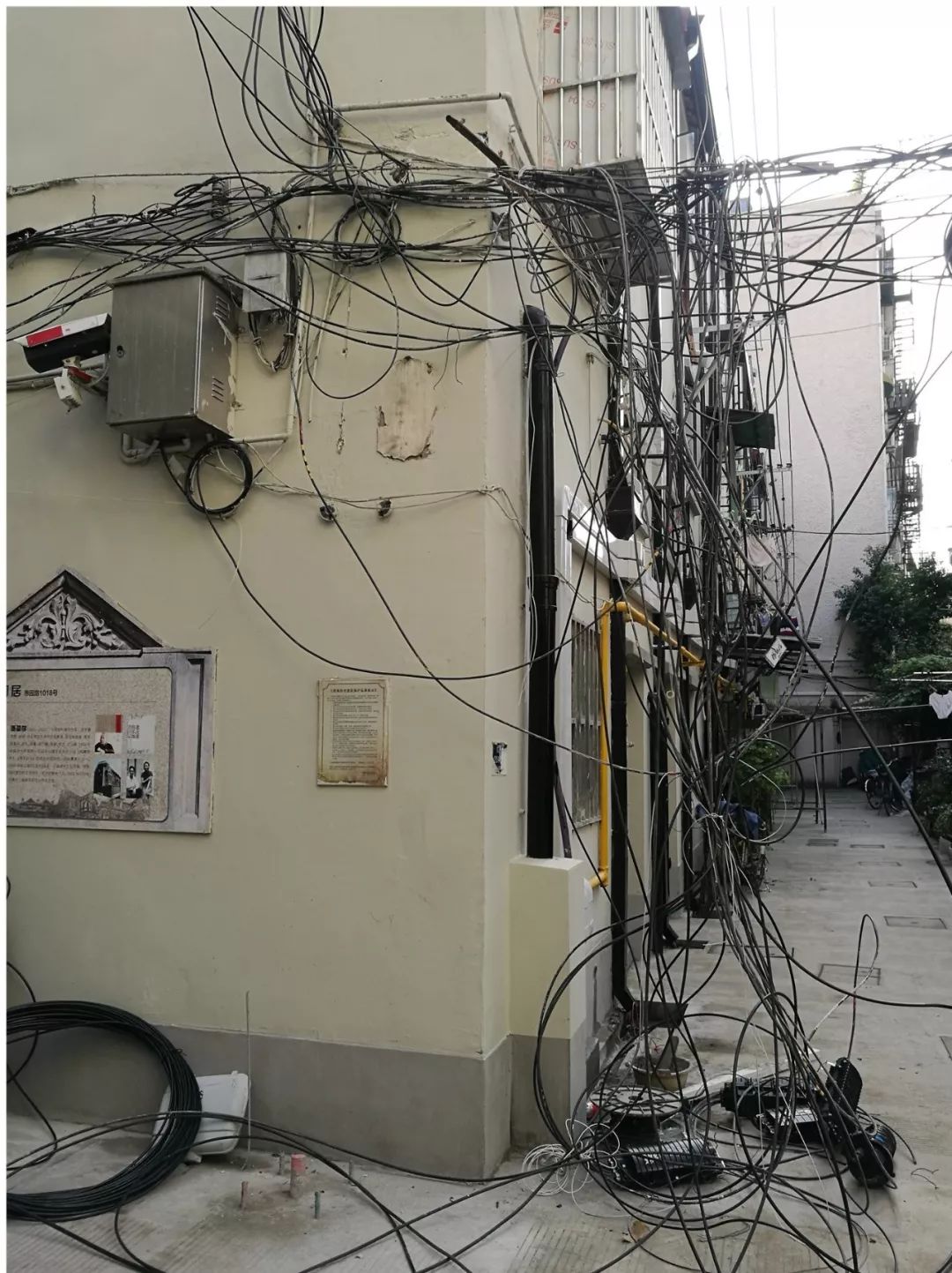 即使住在这样有着悠久历史和文化底蕴的小区,居民也曾经颇感糟心,因为小区环境乱糟糟的,走在里面,几乎到处都能看到乱麻式的线缆,从这栋楼蔓延至另一栋楼。
